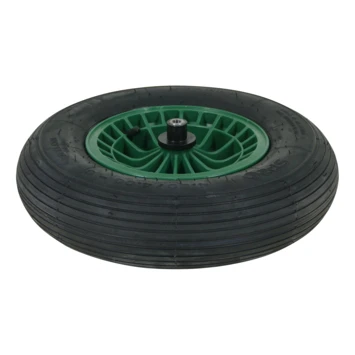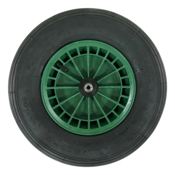 Het Altrad Fort kruiwagenwiel is een luchtbandwiel waarmee je met jouw kruiwagen eenvoudig zware ladingen kan vervoeren. Dankzij het stevige design kan het wiel tot wel 150 kg dragen. Het luchtbandwiel heeft een afmeting van 40×10 cm, een groene kunststof velg en 2ply band. Voor duurzaam gebruik is het wiel rollager vetgesmeerd. Bovendien is het wiel PAK-vrij en voorzien van een Reach certificaat. Dat wil zeggen dat er geen schaddelijke stoffen in het rubber zitten. Kortom, haal het maximale uit je kruiwagen met het Altrad Fort Kruiwagenwiel Groen Kunststof 40×10 cm.